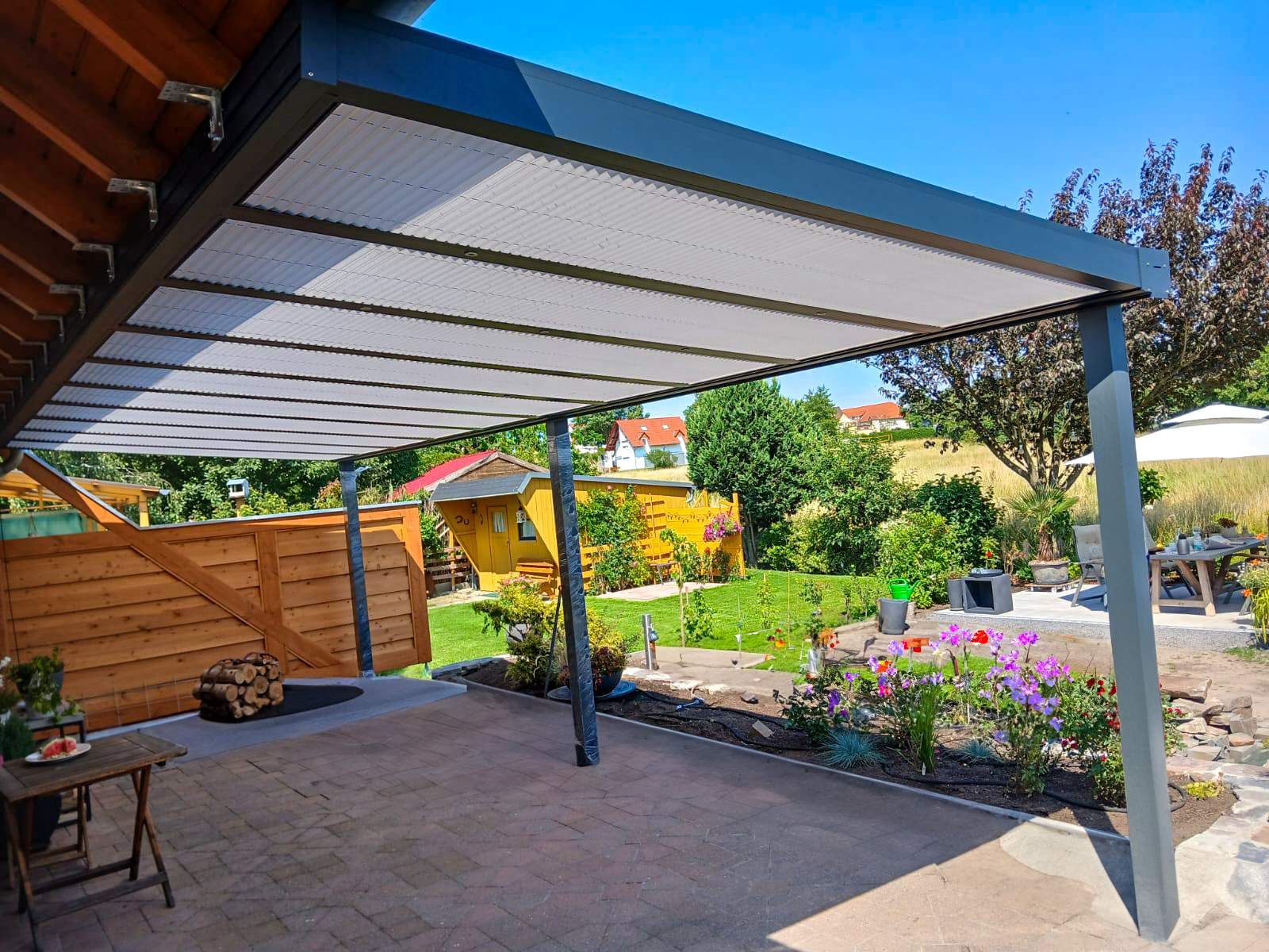 Eine Terrassenüberdachung neben dem Haus hat zahlreiche Vorteile, z.B.: