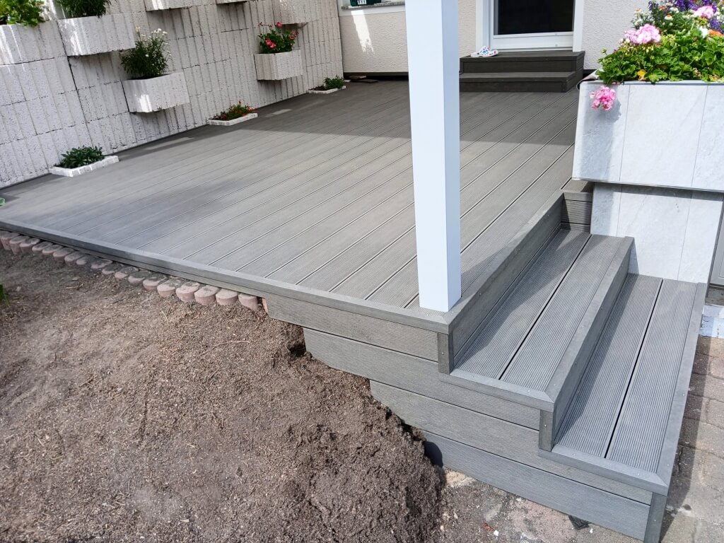 Und genauso war es auch diesmal in Leipzig der Fall. Die Auftraggeber waren mit dem Resultat so sehr zufrieden, dass sie sich ein weiteres Projekt wünschten, nämlich den Bau eines WPC-Terrassensubstrats. WPC-Dielen sind nämlich eine perfekte Ergänzung für die an das Haus grenzende Gartenanlage, über der sich das Terrassendach befindet. Solcher Unterbodenbelag ist gut belüftet, feuchtigkeits- und korrosionsbeständig sowie einfach zu montieren.