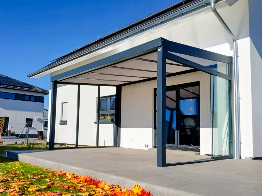 Überdachung mit Sonnenschutz – elegant und sicher