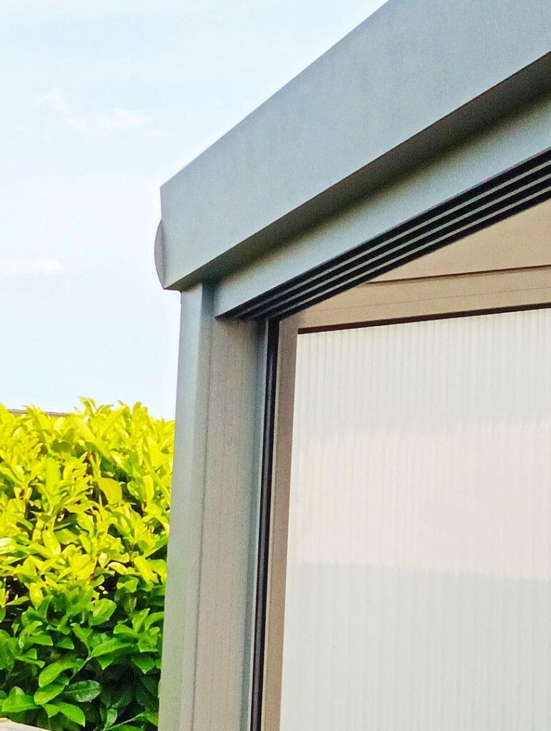 Das „Klar Polycarbonat für die Terrassenüberdachung“ ist nicht komplett transparent wie normales Glas. Man bezeichnet es dennoch als durchsichtiges, klares Polycarbonat. Wie bereits erwähnt, bietet diese Art von Überdachung einen gewissen UV-Schutz. Sie können dadurch den Garten in einem gut beleuchteten Raum genießen und brauchen sich über die Risiken von UV-Strahlung keine Sorgen zu machen. Im Gegensatz zu Milch-weißem Polycarbonat wird mehr Sonnenlicht durchgelassen. Wenn dies Ihren Vorstellungen entspricht, dann ist diese Lösung definitiv zu empfehlen. Dadurch, dass sich unser Kunde für milchige Seitenwände entschieden hat, wird der Raum bereits genug abgeblendet. Damit es tagsüber hell genug ist, war es deshalb wichtig, eine klare Polycarbonat Terrassenüberdachung zu montieren.