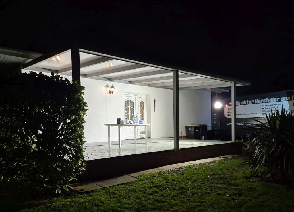 Für unsere Konstruktionen setzen wir auf hochwertige Materialien wie langlebiges Aluminium und UV Polycarbonat für die Dacheindeckung. Diese Kombination sorgt nicht nur für Stabilität und Sicherheit, sondern ist auch pflegeleicht und bleibt über Jahre hinweg optisch ansprechend. Die Terrassenüberdachung Brieselang bietet jetzt aber mehr als nur Schutz. Sie steigert den Wohnkomfort und man kann sie auch zusätzlich mit praktischen Extras wie LED-Beleuchtung oder innovativen Sonnenschutzsystemen ausstatten. So wird die Terrasse zu einem Ort, an dem Sie sich zu jeder Jahreszeit wohlfühlen.