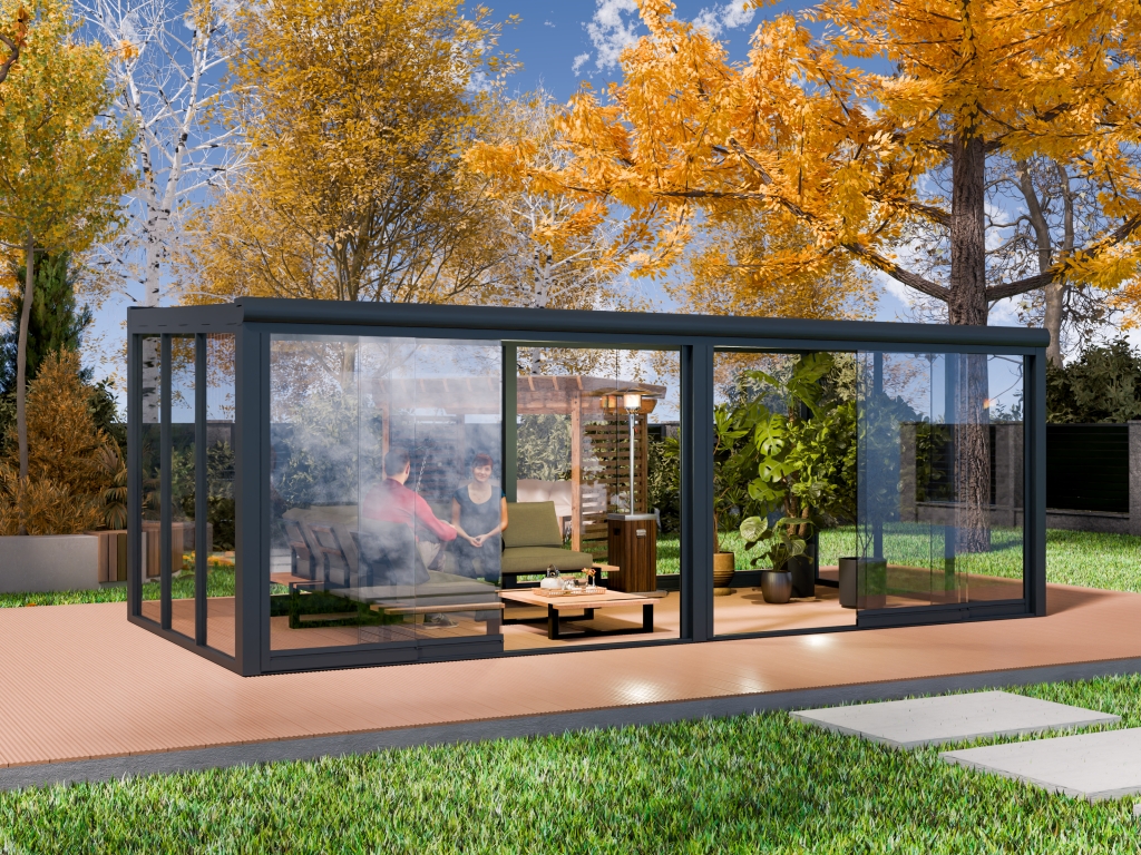- Innovative Schiebesysteme: Die Konstruktion kann durch fortschrittliche Schiebewände und gläserne Paneelsysteme ergänzt werden, die vielfältige Einsatzmöglichkeiten schaffen und die Nutzung Ihres Außenbereichs flexibel gestalten.